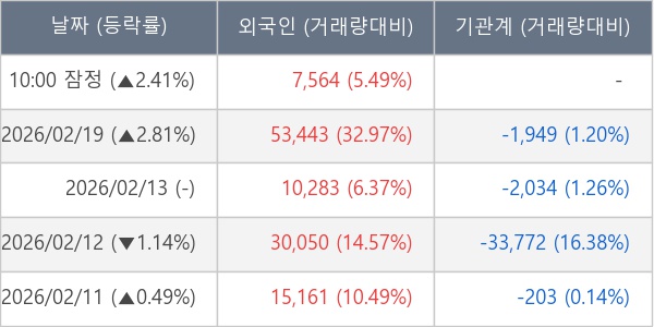 [표] 외국인ㆍ기관 순매매량 (단위 주)