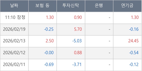 [표] 주요 기관별 순매매량 (단위 만주)