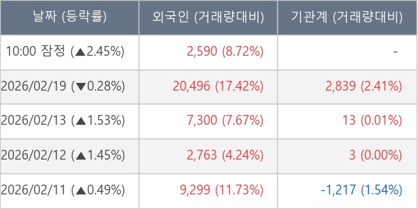 [표] 외국인ㆍ기관 순매매량 (단위 주)