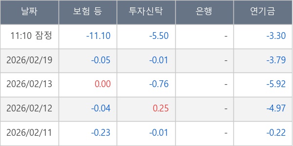 [표] 주요 기관별 순매매량 (단위 만주)