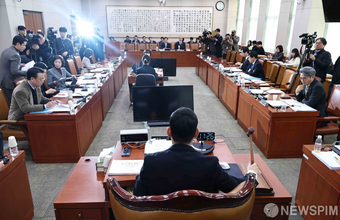 [서울=뉴스핌] 윤창빈 기자 = 김용민 소위원장이 20일 서울 여의도 국회에서 열린 제5차 법안심사제1소위원회에서 의사봉을 두드리고 있다. 2026.02.20 pangbin@newspim.com
