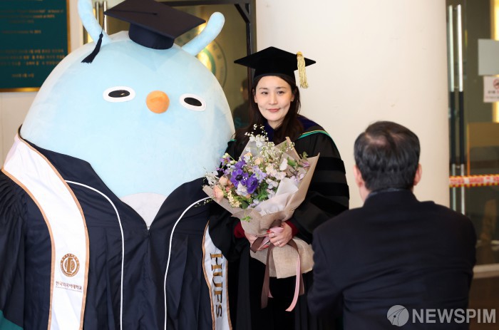 [서울=뉴스핌] 정일구 기자 = 20일 서울 동대문구 한국외국어대학교에서 열린 2026년 전기 학위수여식에서 졸업생이 기념촬영을 하고 있다. 2026.02.20 mironj19@newspim.com