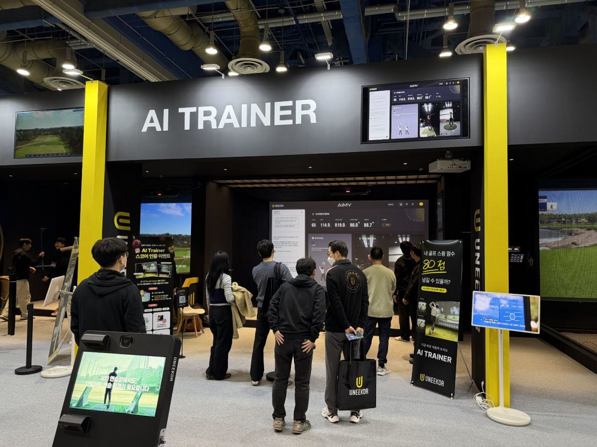 전시의 핵심 콘텐츠는 생성형 AI 기반 대화형 골프 코칭 솔루션 'AIMY'다. AIMY는 스윙 영상과 볼·클럽 데이터를 종합 분석해 개인별 맞춤 피드백을 제공하며, 사용자가 질문하고 답변을 받는 인터랙티브 코칭 환경을 구현한다. 반복적으로 축적되는 샷 데이터는 분석 정확도와 개인화 수준을 고도화하며, 향후 구독형 서비스로 확장 가능한 AI 코칭 플랫폼으로 주목받고 있다.