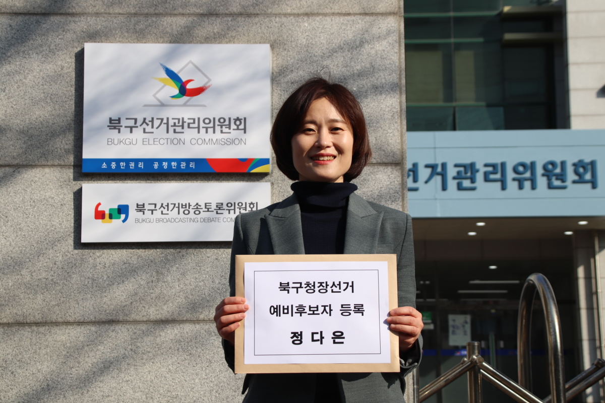 정다은 예비후보는 전날 오전 선거관리위원회에서 예비후보 등록 서류를 제출한 뒤 "행정통합 대전환에 적합한 미래지향적인 새 인물이 필요하다"며 "더불어민주당의 성과를 주민이 체감할 수 있는 선거로 만들어야 한다"고 밝혔다.