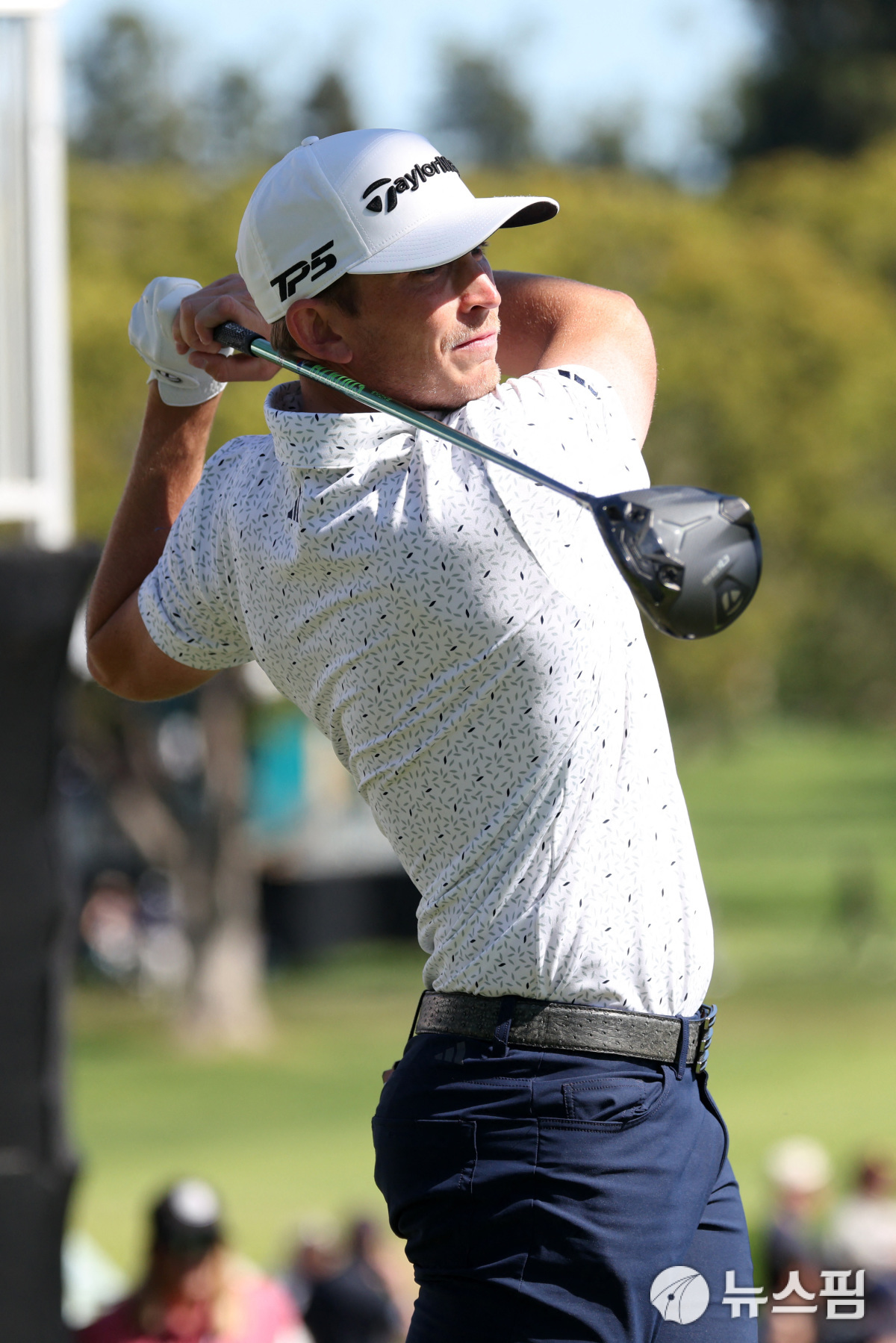 [로스앤젤레스 로이터=뉴스핌] 장환수 스포츠전문기자= 제이콥 브리지먼이 22일 제네시스 인비테이셔널 3라운드 3번 홀에서 티샷을 하고 있다. 2026.02.22 zangpabo@newspim.com