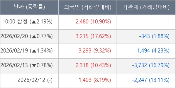 [표] 외국인ㆍ기관 순매매량 (단위 주)