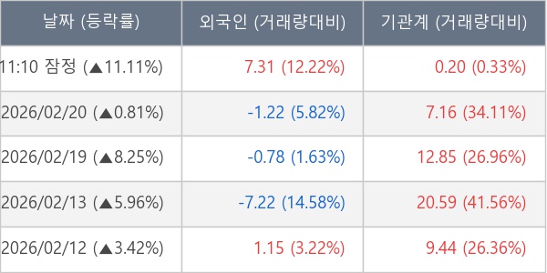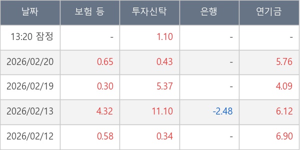 [표] 주요 기관별 순매매량 (단위 만주)