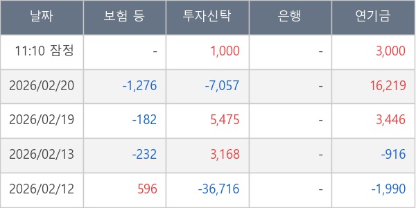 [표] 주요 기관별 순매매량 (단위 주)