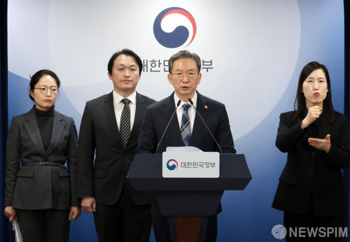 [서울=뉴스핌] 이길동 기자 = 정성호 법무부 장관이 23일 오후 서울 종로구 정부서울청사에서 국제투자분쟁(ISDS) 사건 관련 브리핑을 하고 있다. 이날 정부는 美 사모펀드 엘리엇을 상대로 한 국제투자분쟁(ISDS) 사건 중재판정 영국 법원 취소소송에서 승소 했다고 밝혔다.2026.02.23 gdlee@newspim.com
