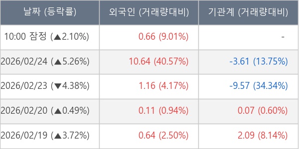 [표] 외국인ㆍ기관 순매매량 (단위 만주)