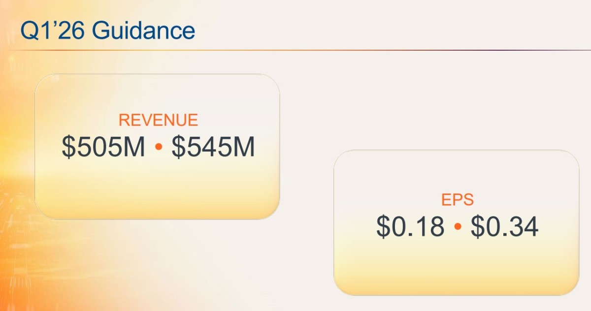 울트라 클린 홀딩스(종목코드: UCTT)가 제시한 2026년 1분기 가이던스는 매출 5억 500만~5억 4500만 달러(중간값 5억 2500만 달러), 조정 EPS 0.18~0.34달러(중간값 0.26달러)다. 직전 분기 대비 소폭의 성장에 그치는 수준이나, 경영진은 2026년 하반기에 본격적인 회복이 나타날 것으로 거듭 강조했다.