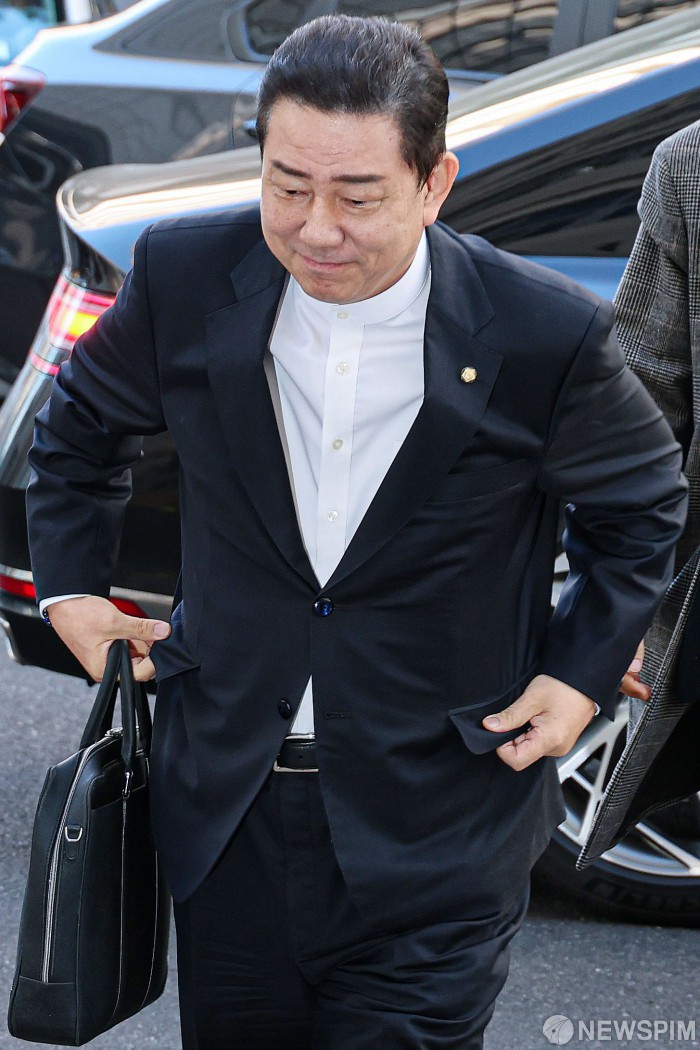 [서울=뉴스핌] 류기찬 기자 = 13가지 의혹을 받는 김병기 무소속 의원이 26일 오전 서울 마포구 서울경찰청 공공범죄수사대에 조사를 받기 위해 출석하고 있다. 2026.02.26 ryuchan0925@newspim.com