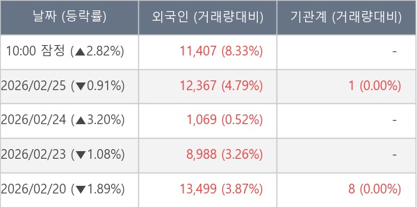 [표] 외국인ㆍ기관 순매매량 (단위 주)