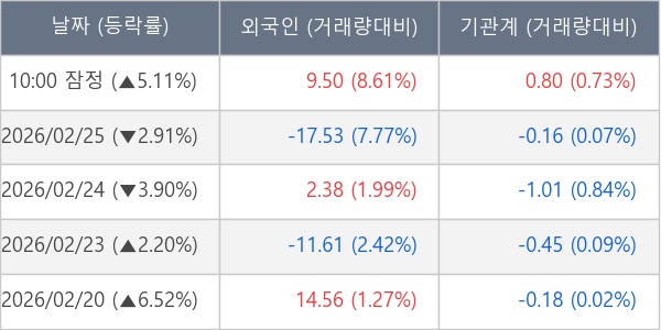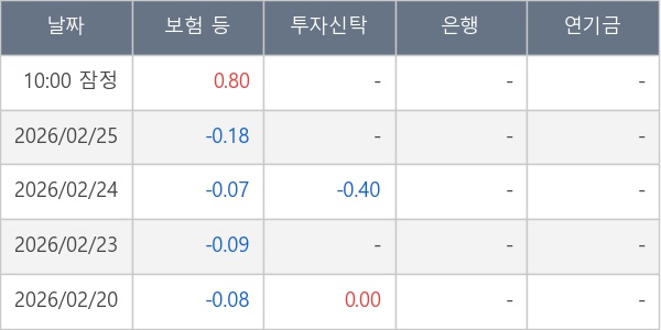 [표] 주요 기관별 순매매량 (단위 만주)