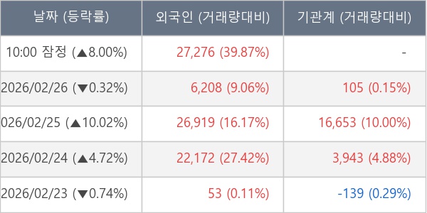 [표] 외국인ㆍ기관 순매매량 (단위 주)