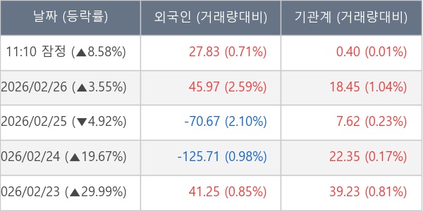 [장중수급포착] 대원전선, 기관 5일 연속 순매수행진... 주가 +8.58%