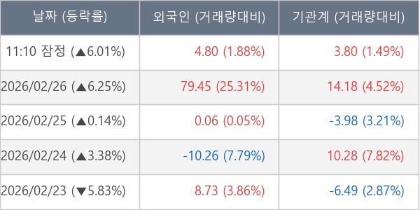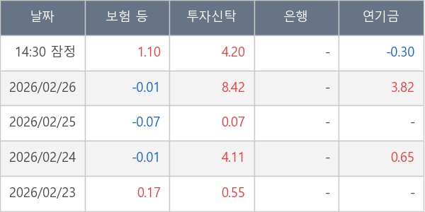 [표] 주요 기관별 순매매량 (단위 만주)