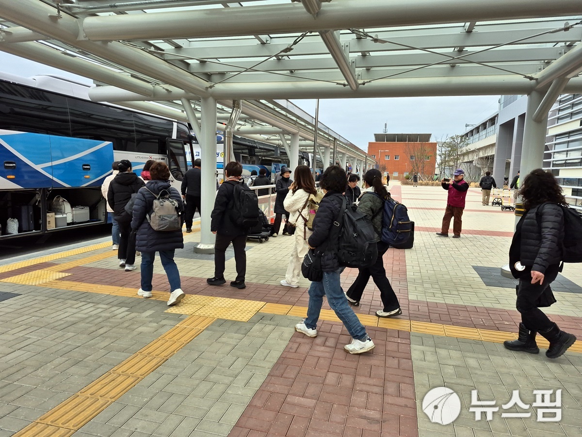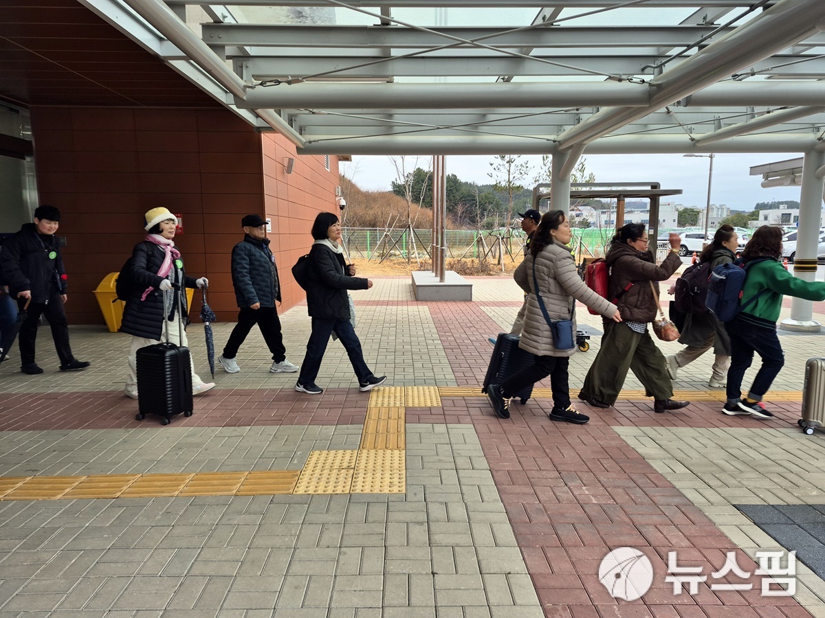 [울진=뉴스핌] 남효선 기자 = 2월 마지막 주말이자 '3.1절' 연휴 첫날인 28일, '국악 와인 열차' 투어 프로그램에 참여한 수도권 관광객들이 '울진대게와붉은대게축제'가 펼쳐지는 후포항으로 이동하기 위해 울진역 플랫폼을 나서며 '환영 버스킹' 공연에 맞춰 즐거운 표정으로 손을 흔들고 있다. '국악 와인 열차'는 울진군이 코레일과 연계한 열차·숙박·관광을 결합한 체류형 프로그램이다. 이들 관광객은 바다, 온천, 금강소나무 숲 등 '3욕(三浴)'의 울진지역 힐링 관광명소 투어와 함께 후포항 왕돌초 광장 일원에서 펼쳐지는 '울진대게와붉은대게축제'에 참여해 제철맞은 대게와 붉은대게 등 후포항이 선사하는 싱싱한 바다먹거리의 향연을 즐긴다. 이날 '국악 와인 열차'를 통해 울진을 찾은 축제객은 240여 명으로 전해졌다. '울진대게·붉은대게축제'는 풍성한 바다 먹거리와 체험·공연 프로그램을 담아 오는 3월 2일까지 펼쳐진다.