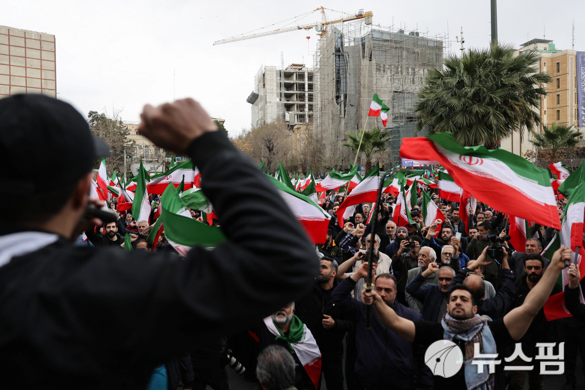 28일(현지시간) 테헤란에서 이란 시민들이 미국과 이스라엘의 공격에 항의하는 시위를 하고 있다. [사진=로이터 뉴스핌]