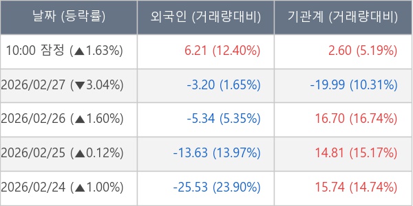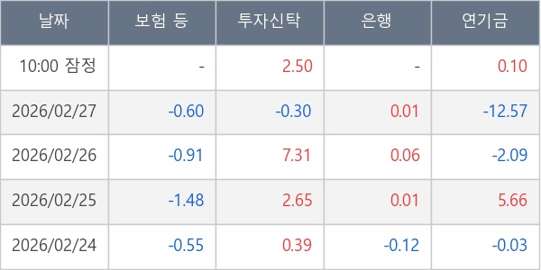 [표] 주요 기관별 순매매량 (단위 만주)