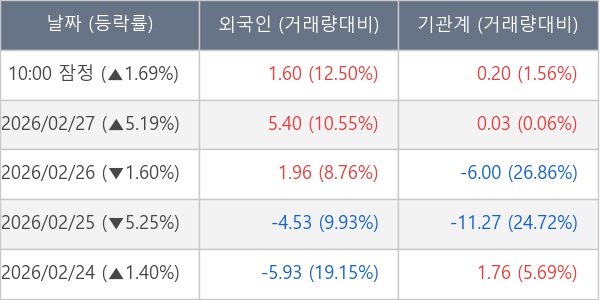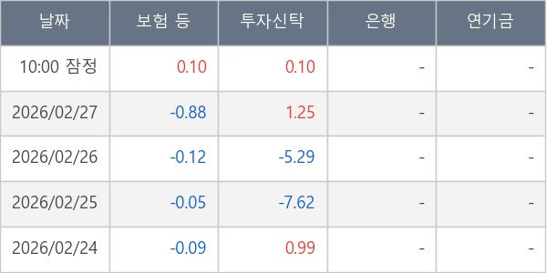 [표] 주요 기관별 순매매량 (단위 만주)
