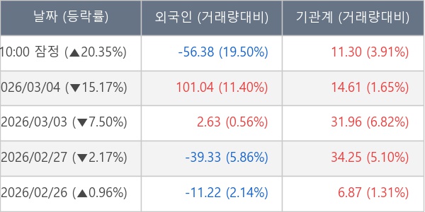 [표] 외국인ㆍ기관 순매매량 (단위 만주)