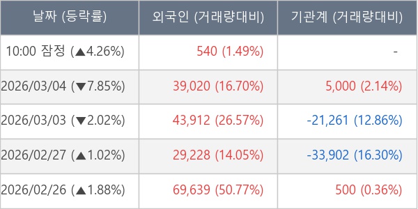 [표] 외국인ㆍ기관 순매매량 (단위 주)
