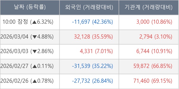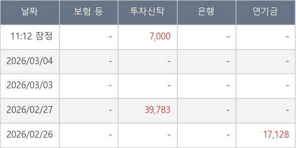 [표] 주요 기관별 순매매량 (단위 주)