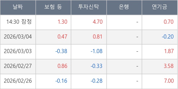 ※ 사모펀드 등 일부 기관의 순매매량은 표시되지 않음