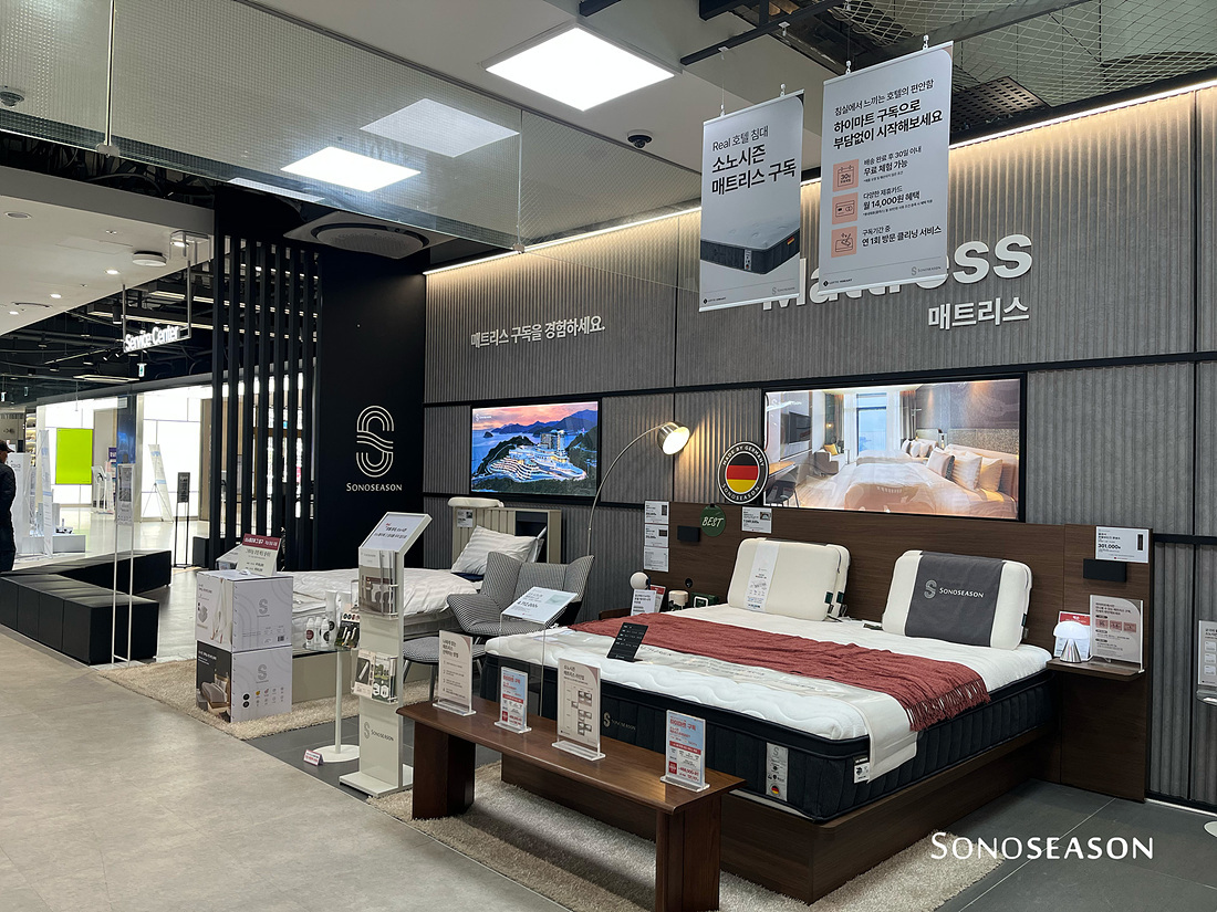 소노시즌의 신규 매장들은 브랜드 가치와 제품을 직접 경험해 볼 수 있는 공간으로 조성됐다. 특히 '시그니처 메모리폼 매트리스', '센세이션 메모리폼 매트리스'를 비롯한 독일산 프리미엄 메모리폼 매트리스와 프레임, 베개, 침구 등 소노시즌의 다양한 제품 라인업을 선보였다. 또 전문 상담직원이 상주, 고객별 맞춤 제품을 제안하는 1대 1 상담 서비스 운영한다.