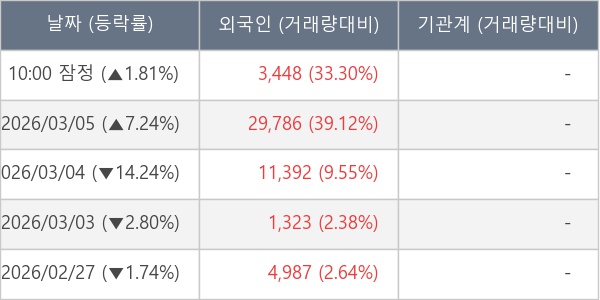 [표] 외국인ㆍ기관 순매매량 (단위 주)