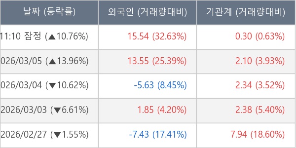 [표] 외국인ㆍ기관 순매매량 (단위 만주)