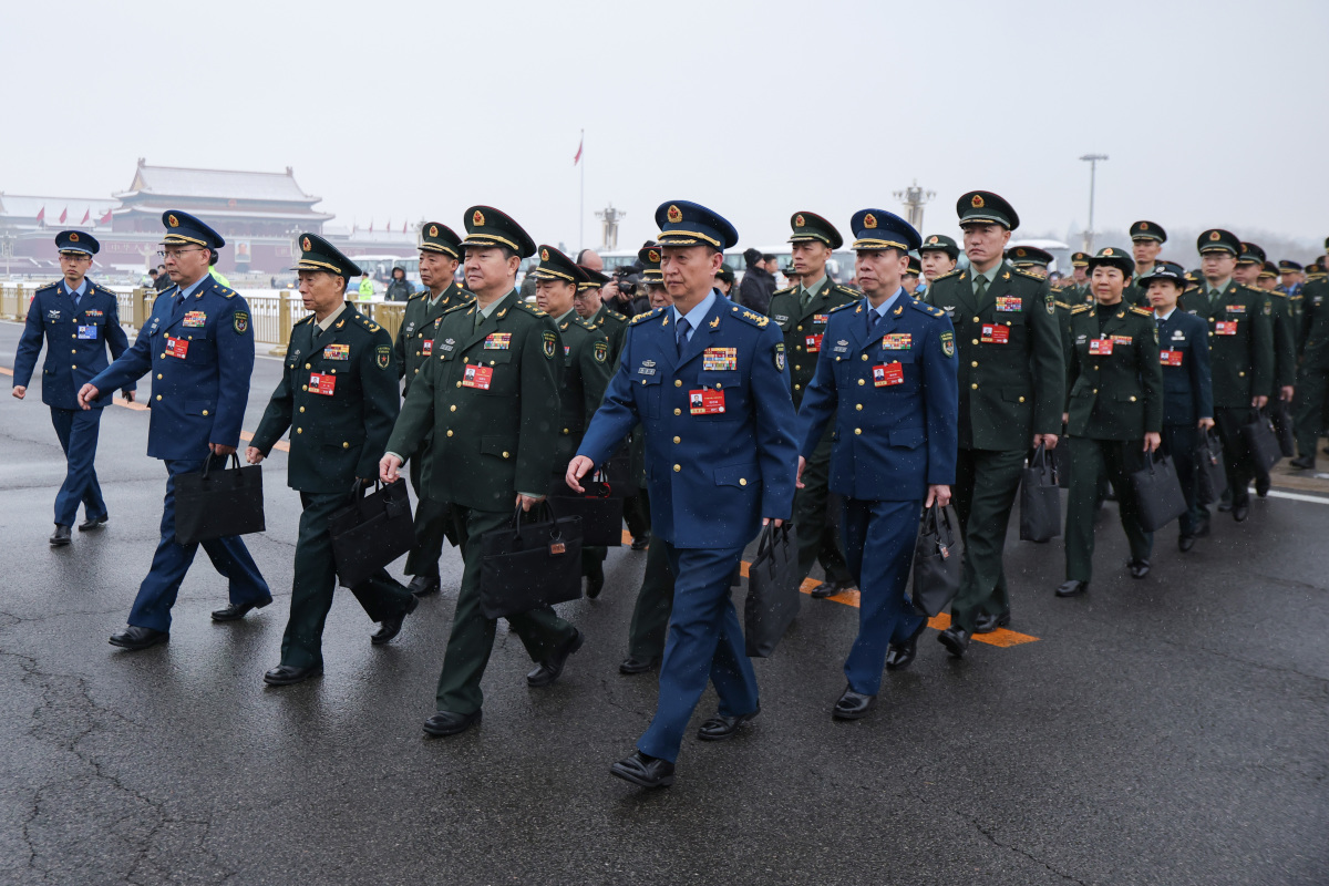 중국 인민해방군 인민대표들이 지난 5일 전국인민대표대회가 개막한 베이징 인민대회당을 향해 걸어가고 있다. [사진=중국신문사] 조용성 특파원 = 2026.03.09 ys1744@newspim.com