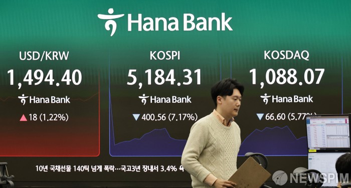 코스피 7% 하락 5100선...달러/원 환율 1494원 출발