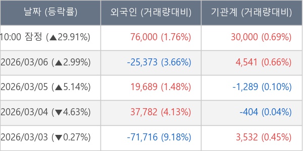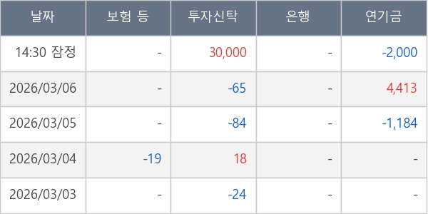 [표] 주요 기관별 순매매량 (단위 주)