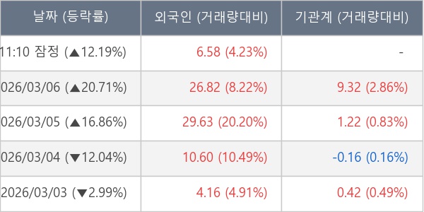 [표] 외국인ㆍ기관 순매매량 (단위 만주)