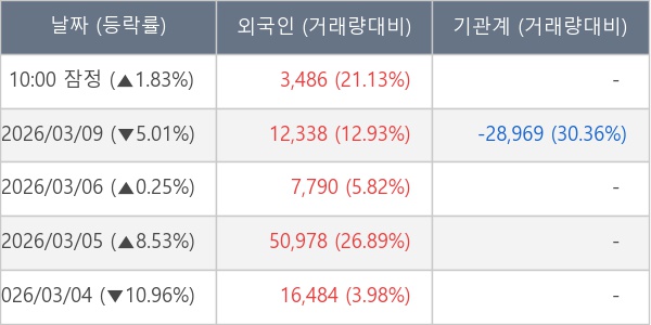 [표] 외국인ㆍ기관 순매매량 (단위 주)