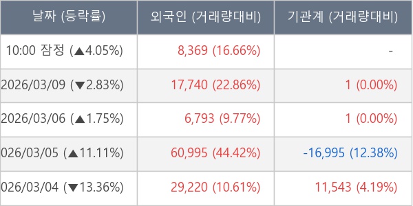 [표] 외국인ㆍ기관 순매매량 (단위 주)