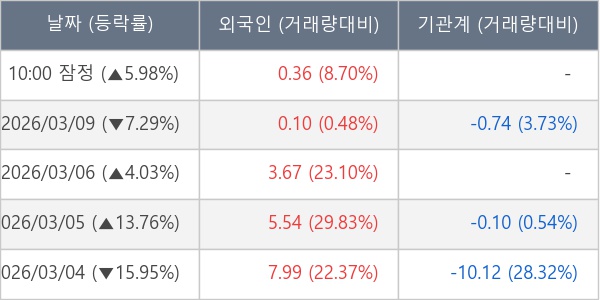 [표] 외국인ㆍ기관 순매매량 (단위 만주)