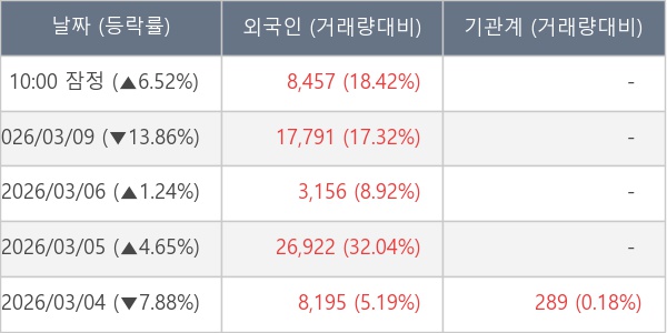 [표] 외국인ㆍ기관 순매매량 (단위 주)