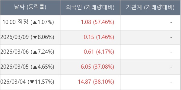 [표] 외국인ㆍ기관 순매매량 (단위 만주)