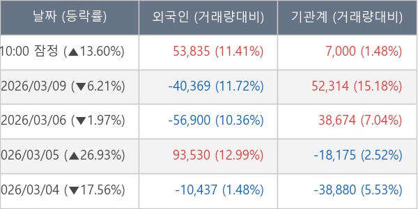 [표] 주요 기관별 순매매량 (단위 주)