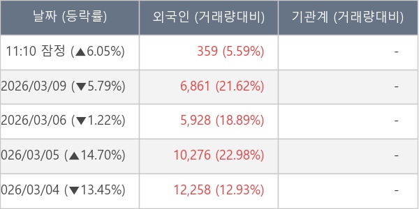 [표] 외국인ㆍ기관 순매매량 (단위 주)
