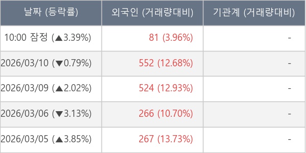 [표] 외국인ㆍ기관 순매매량 (단위 주)