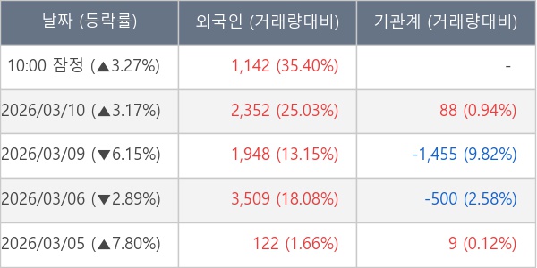 [표] 외국인ㆍ기관 순매매량 (단위 주)