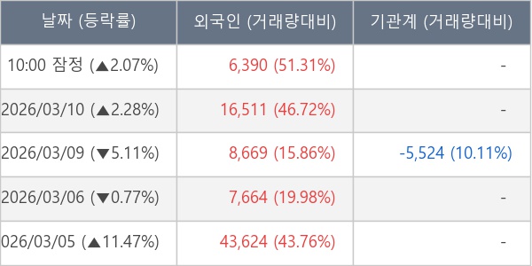 [표] 외국인ㆍ기관 순매매량 (단위 주)