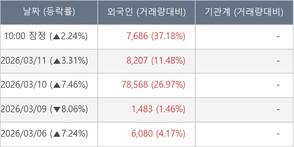 [표] 외국인ㆍ기관 순매매량 (단위 주)