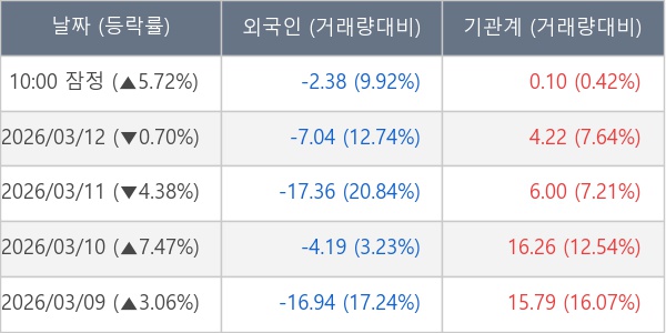 [표] 외국인ㆍ기관 순매매량 (단위 만주)