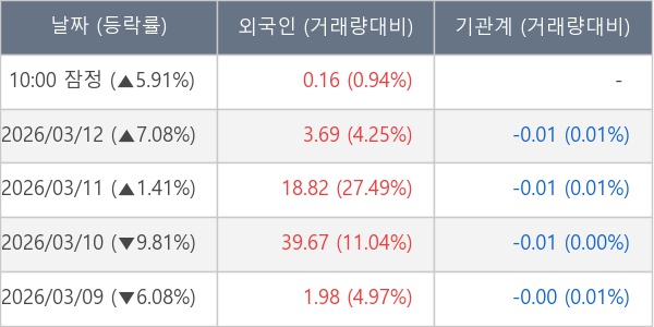 [표] 외국인ㆍ기관 순매매량 (단위 만주)