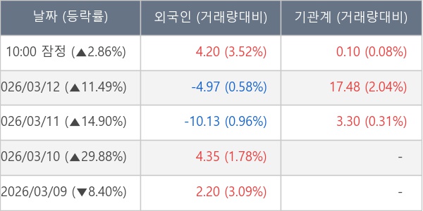 [서울=뉴스핌] 로보뉴스 = 13일 10시 15분 현재 라이콤(388790)은 외국인과 기관이 각각 4.20 만 주, 0.10 만 주 순매수(잠정) 하면서 전일 대비 2.86% (현재가 5,040원) 상승하고 있다.